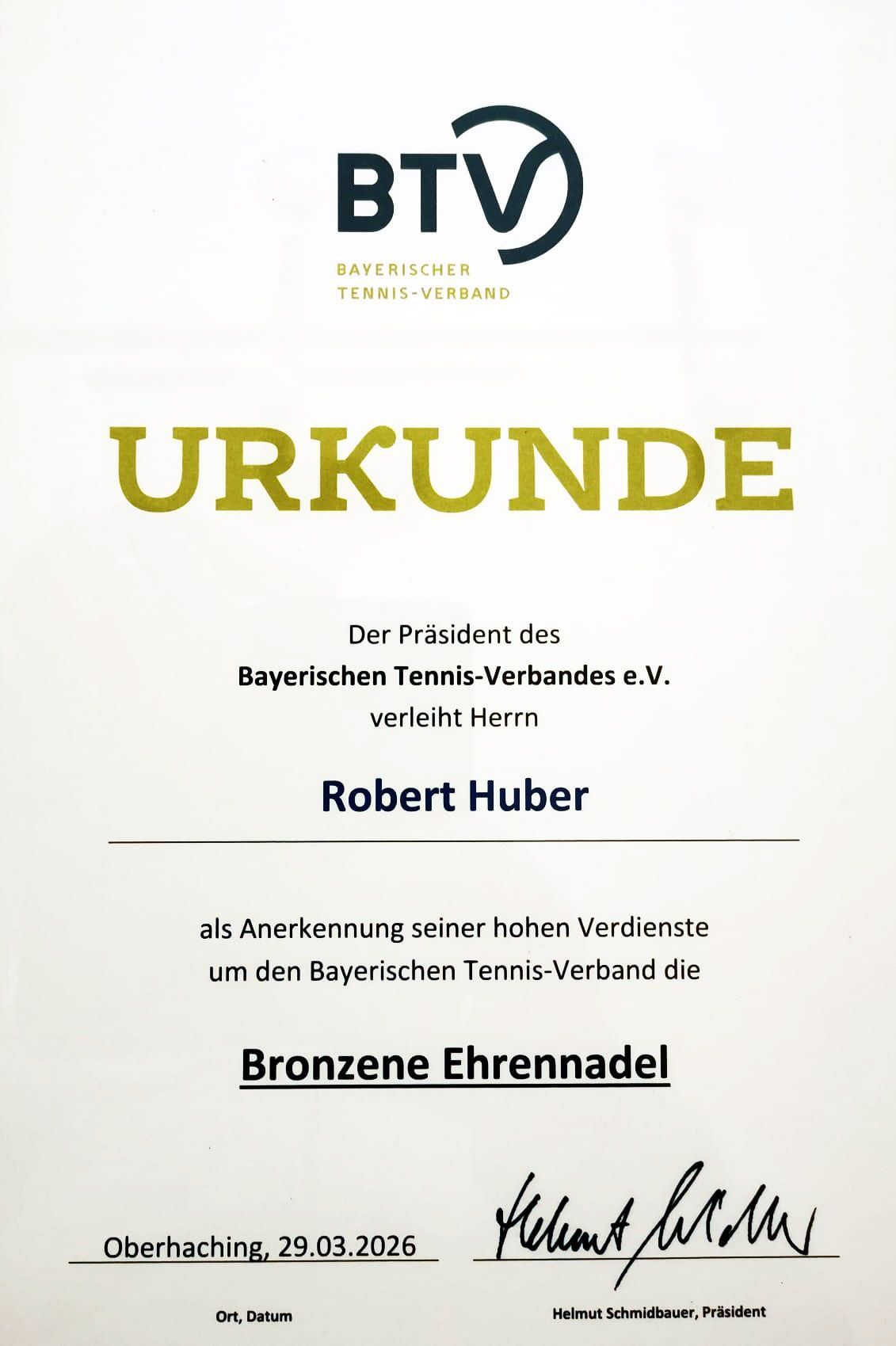 Neu Vorstand Rober Huber bedankte sich bei seinem Vorgänger Josef Hüttner für die jahrelangen Dienste um den Tennisverein, welchem er seit 1980 angehörte. In dieser langen Zeit hatte er viele verschiedene Positionen inne. Er ist der TV Hölsbrunn und als sein Nachfolger trete er in große Fußstapfen. Auch er bedankte sich mit einem Präsent und wünschte ihm alles Gute und er hofft, ihn weiterhin auf der Tennianlage anzutreffen.